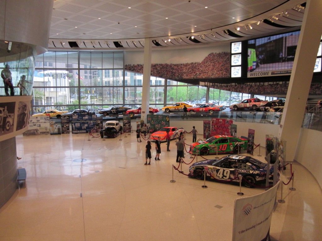 I came away impressed with the building, the collection, and the stories told. “Officially authorized” museums – and the NASCAR Hall of Fame is just that – might be expected to avoid difficult subjects. Yet the NASCAR Hall doesn’t shy away from the serious. The sport’s origins in illegal alcohol, its work to improve safety, and its long-running efforts to appeal to wider audiences all get addressed in the exhibits. Like all museums, it might struggle to keep its presentation fresh (I can’t imagine the difficulty in changing out those “Glory Road” cars, for example), but the “Hall of Honor” and changing exhibit space beneath “Glory Road” should help. The NASCAR Hall of Fame is well-worth a pilgrimage for devoted fans of stock car racing.