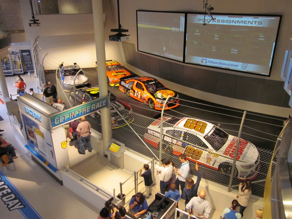 Those looking for a more hands-on experience will enjoy “Race Week,” the Hall’s exploration of the science and skill behind NASCAR. Visitors can inspect carburetors in search of rule violations. They can walk through a full-sized car transporter. They can work with teams (and against the clock) to re-fuel and re-tire a car in a pit stop activity. And, perhaps best of all, they can climb into one of five cars fitted with simulator equipment and “race” against their friends. Those who prefer to stay off the track can try their hand at flagging the virtual race – and then pose for a photo waiving the checkered (or green, or white, or yellow, or red, or black…) flag.