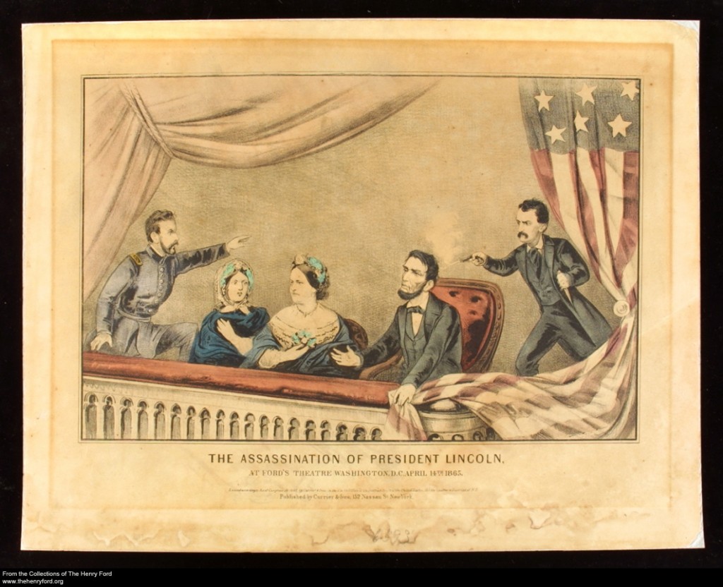New York printmakers Currier and Ives were well known for producing inexpensive lithographic prints of landscapes, famous people, and scenes of everyday life. This was an affordable way for the middle classes to decorate their homes. This shocking scene of President Lincoln’s assassination was unusual for the firm and served to visually dramatize the event for a grieving nation.