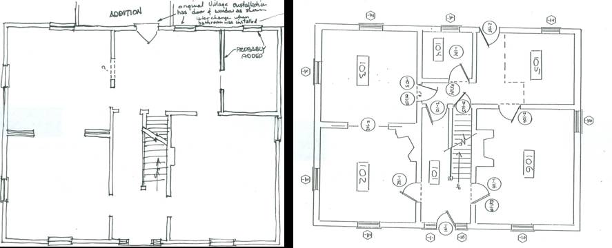 Like the foundation of the Adams House, the floor plan has shifted and fluctuated. The great gap in years, as well as the gap in the written and photographic record, makes piecing together the layout of the Adams House a daunting task. By using a combination of photographs, blueprints, and oral histories, employees at The Henry Ford have been able to conjecturally construct the history of the George Matthew Adams House. With this fresh and logical outlook, it is easier than ever to see the changes in the home between its construction in 1846, George Matthew Adams’ birth in 1878, and the purchase of the house by The Henry Ford in 1937. These changes over the years show how the role of the house evolved to meet the needs of new families and domestic ideals. The recent study on the Adams House layout has helped uncover not only what features of the house had been modified, but also how and why those alterations took place when they did.