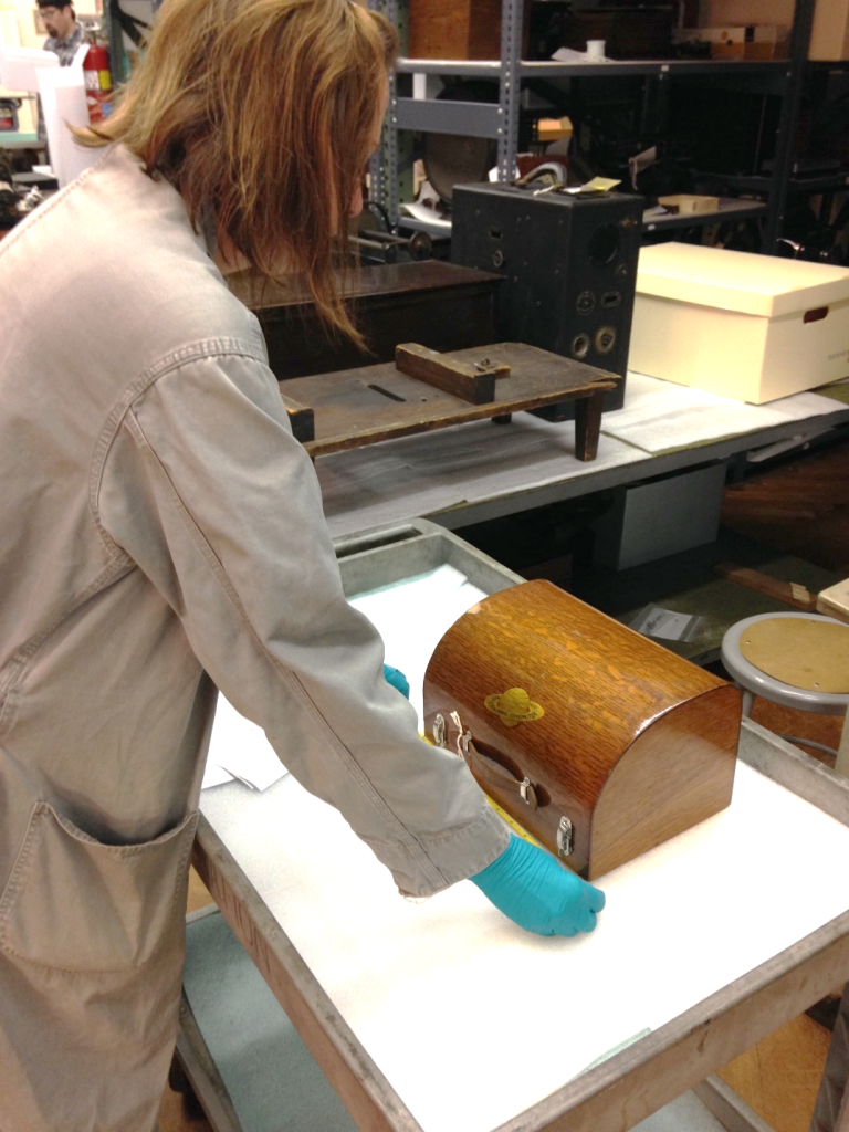 Discovery: The artifacts are currently stored in our Collections Storage Building, so the team must first pull all the objects off of shelves systematically. Once that is done, our Curator of Communication and Information Technology, Kristen Gallerneaux, determines which objects are considered part of the grant using our proposal for reference.