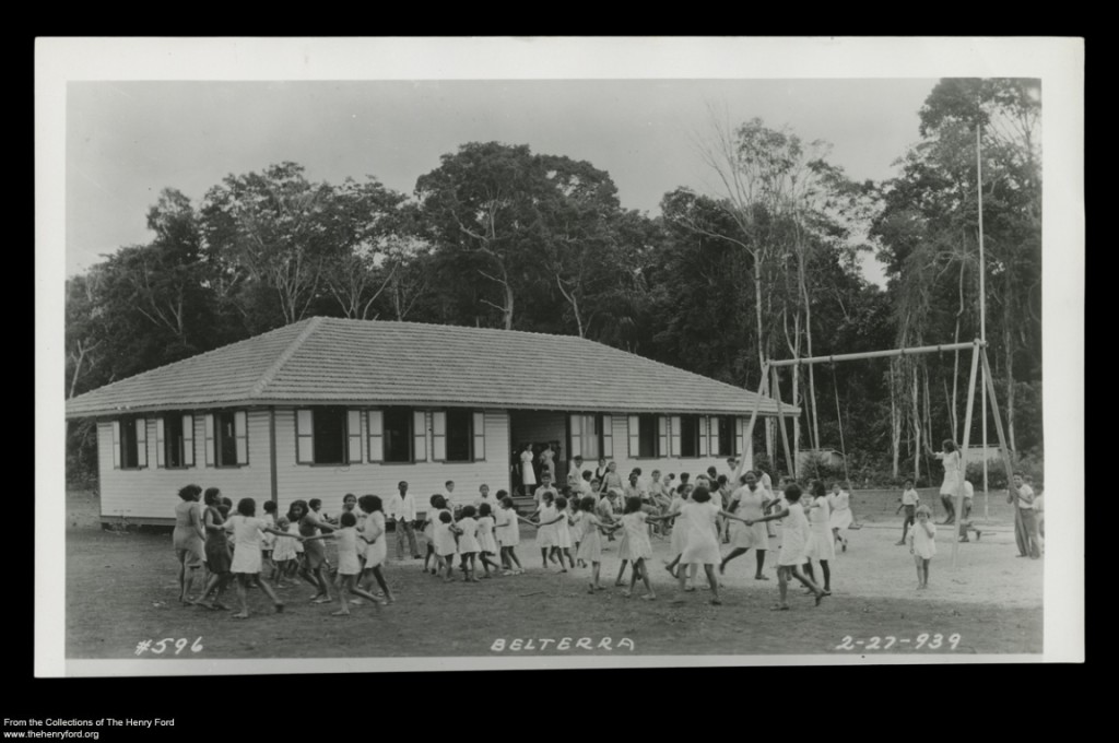 Henry Ford – stubborn and proud and innovative – decided to try again. A new location for a second plantation was selected in 1931, land farther downstream from Fordlandia on the Tapajos River. This new plantation was named Belterra, and from the start it fared much better than Fordlandia ever had – in large part because Ford greatly relaxed his policies of social control that had failed in Fordlandia. He allowed some traditional Brazilian customs to be incorporated into Belterra daily life, such as traditional local eating habits and musical instruments. The second time around, however, Henry Ford wanted to expand his vision for a “Dearborn in the Jungle.” He was willing to loosen up on many things, but one area where he would not budge was the type of educational structure he envisioned at Belterra.