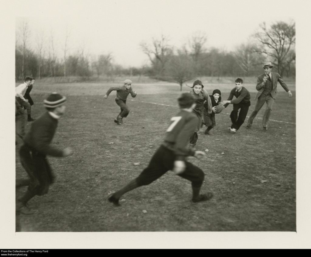 At first each college played by its own variations. Rules were minimal. The teams played “mob style,” with huge numbers of players on each side attempting to advance the ball to a goal on the opponents’ side of the field by any means necessary! It is easy to imagine how violent and dangerous this got.