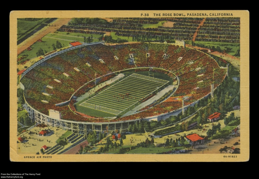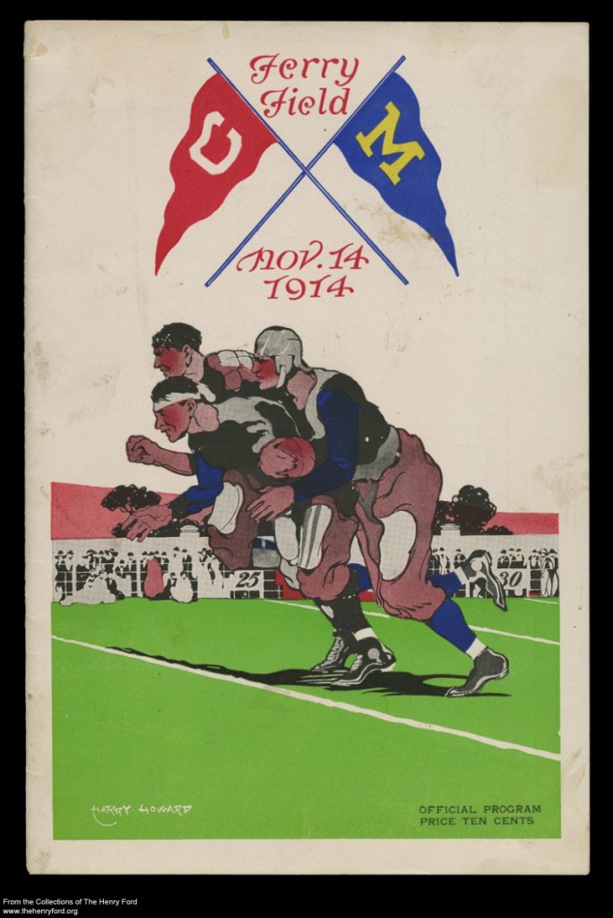 The University of Michigan was the first school west of Pennsylvania to establish a college football team (1879). Other Midwest schools soon followed. The U-M team, undefeated for 56 games between 1901 and 1905, was invited to compete against California-favored Stanford in the first Tournament of Roses game in 1902. University of Michigan won 49-0—perhaps accounting for why there wasn’t another Tournament of Roses game until 1916!