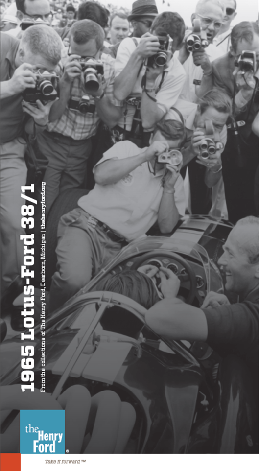 Legendary road racer Dan Gurney concluded that the proper application of European Formula 1 technology could capture the Indianapolis 500. He brought Ford Motor Company together with Colin Chapman, English builder of Lotus sports and racing cars. The chassis made by Group Lotus in Hethel, England, and the engine was made by Ford Motor Company here in Dearborn.