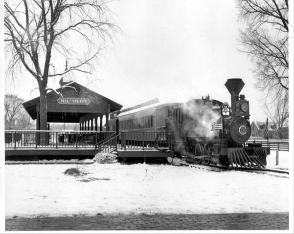 In 1974 construction of the Main Street and Suwanee Stations was completed and operational for the season. Main Street was a covered platform intended to provide train access for guests near Greenfield Village’s entrance (Main Street, which was the road leading from the Greenfield Village entrance in that period is what we now call State Street). The third stop near Riverfront Street was a covered platform that facilitated guest access to the new Suwanee Park. Probably because of its close proximity to the new stations, the Smiths Creek Station was no longer used as a train stop.