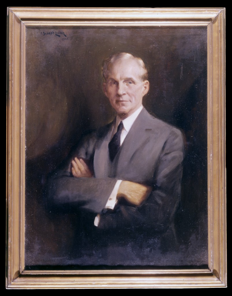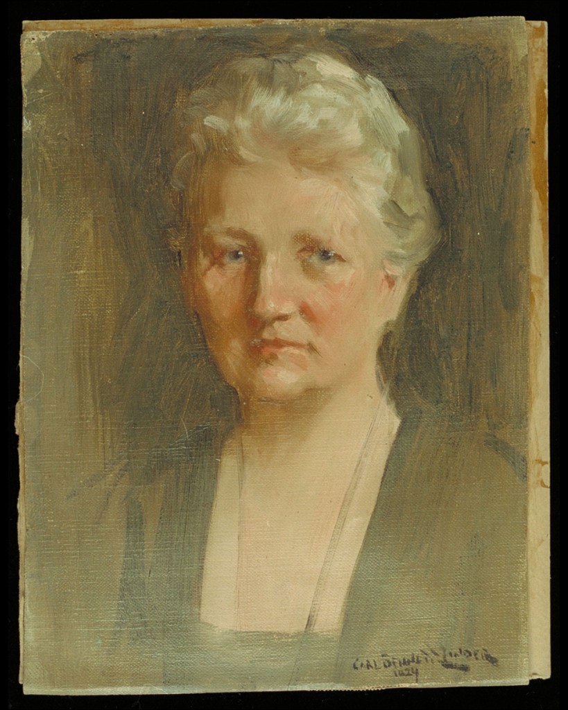 Recently, while searching through our painting collection for portraits of Henry and Clara Ford, I came across two created in 1926 by an artist named Carl Bennett Linder. Displayed at Henry and Clara Ford’s Fair Lane home, these portraits came to Henry Ford Museum in 1951, following Clara’s death. A search of our collections database revealed that we actually own nine canvases by Mr. Linder – all portraits of the Ford family. Curious, I searched the Ford family papers, where I found letters and receipts spanning from 1924 to 1936 for an even larger group of paintings of the extended Ford family: Henry and Clara’s son, Edsel, and his wife, Eleanor; the Ford grandchildren; and even a portrait of Mrs. William Clay, Eleanor Ford’s mother. Mr. Linder was apparently a favorite artist of Henry and Clara, as he produced several portraits of them over the years.