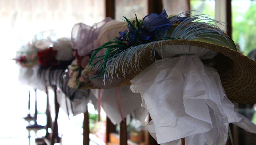 The hats that are made and displayed now in the shop are representative of those made during the shop's operations in the mid 1890s.