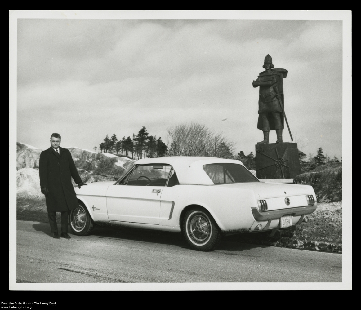 On April 14, 1964, Eastern Provincial Airlines pilot Stanley Tucker walked into George Parsons Ford, a dealership perched on the eastern edge of the continent in St. John’s, Newfoundland. It was love at first sight. The sharp-looking Wimbledon White convertible jumped out at the 33 year-old pilot, and he knew he had to have it. We don’t know the name of the person who sold the car to Tucker – but the pilot must have been quite a salesman himself. Somehow, he convinced Parsons Ford to break street date and sell him the car three days before April 17, when Ford officially released Mustang to the world. He took serial number 5F08F100001 home and, for a short time, was the general public’s only Mustang owner.