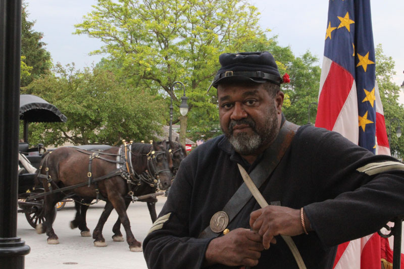 Jeff Sinclair is a member of the 102 Colored Troops. He's been reenacting for 16 years with the 30-member group that includes story tellers who portray Harriet Tubman and Frederick Douglass. Their group also has a display of medical supplies and implements, and they set up numerous educational boards.