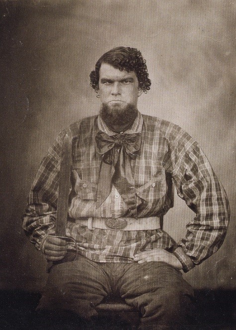 It's all in the details and the outcome of such can be profound. A photograph taken using a 1860s wet-plate process of a colleague taken years ago illustrates this point exactly. Robert Lee Hodge, noted living historian and Civil War battlefield preservationist, had created an impression of an early-war civilian soldier. Wearing accurately constructed period clothing, sporting period facial hair, carrying a battle knife, and even crossing his eyes slightly, you would not know if this man is alive today or if it was taken of a Missouri or Kansas “cut throat” or “boarder ruffian” from 1861. Rob’s accurately constructed drop-shoulder cotton plaid work shirt (or battle shirt), fancy silk cravat, jeans-cloth trousers – all with a great deal of wear patina – make this image indiscernible if was taken within the past ten or 150 years. Rob was one of the subject matters in Tony Horwitz’s 1998 Pulitzer Prize-winning book Confederates in the Attic and this image was used on the paperback version of the book.