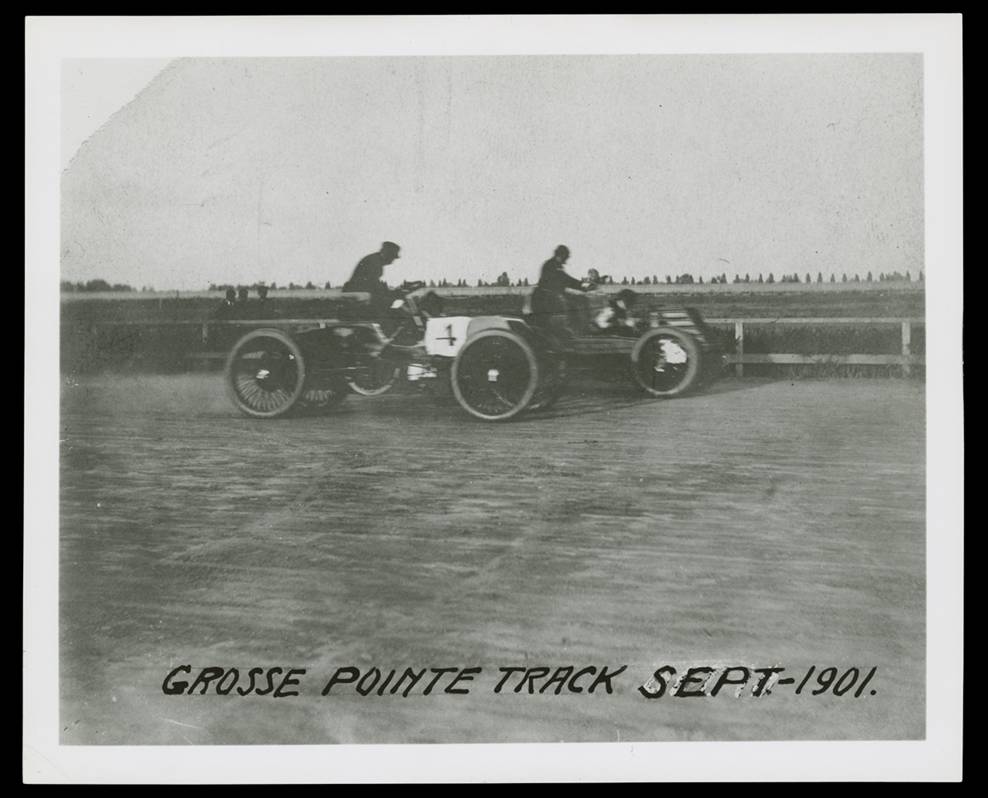 Henry Ford driving his "Sweepstakes" race car against Alexander Winton, Grosse Pointe, Michigan, 1901 (THF94819).