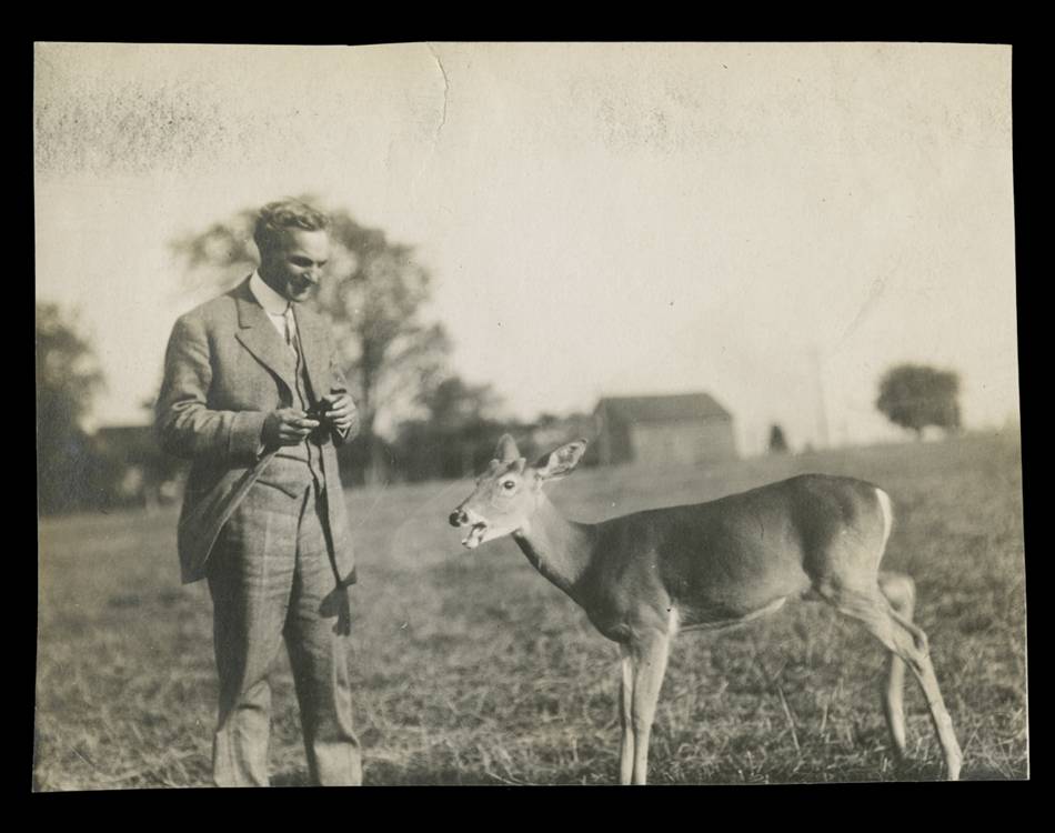 Henry Ford feeding a deer, circa 1912 (THF97195).