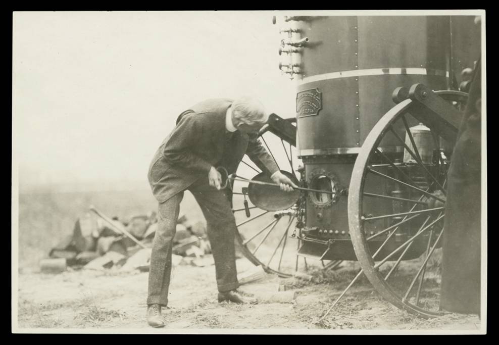 Henry Ford operating a Westinghouse portable steam engine, Dearborn, Michigan, 1922 ( THF96847).