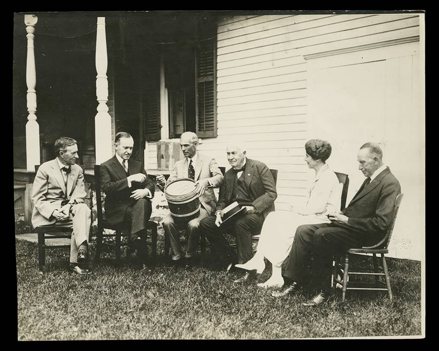 Henry Ford and the Vagabonds visited President Calvin Coolidge's farm in Vermont in 1924. Coolidge presented Henry with a bucket used in collecting maple syrup (THF108551).