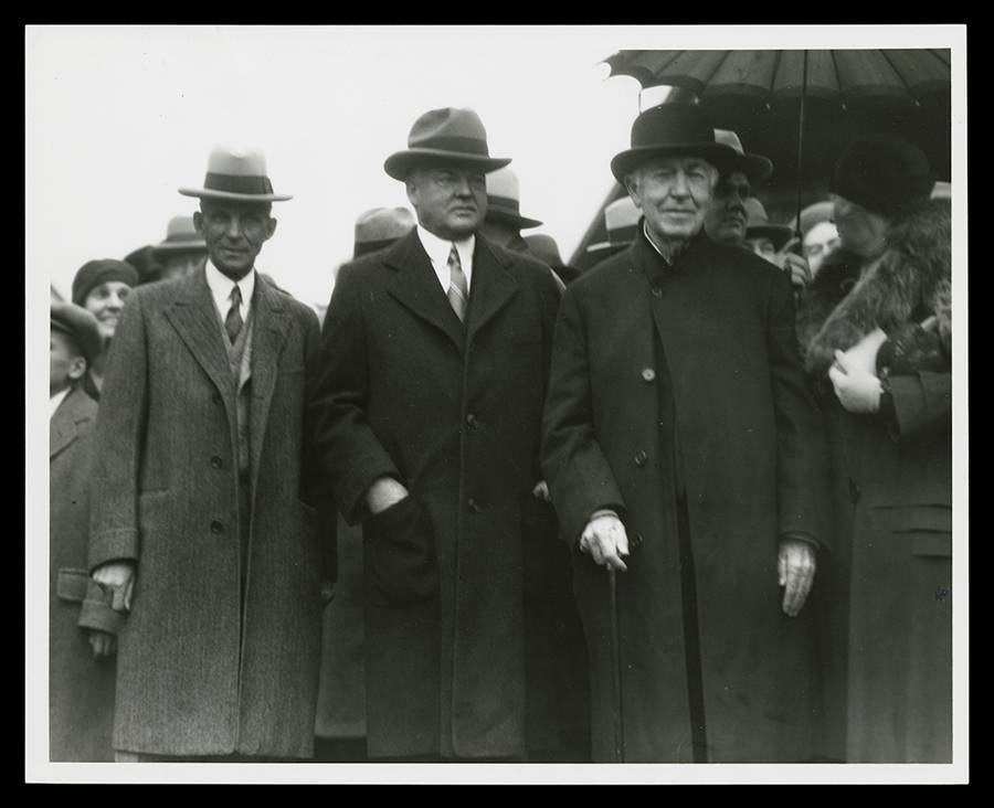 President Herbert Hoover visited Greenfield Village with Henry Ford and Thomas Edison for Light’s Golden Jubilee, the 50th anniversary of Edison’s incandescent light and the dedication of the Edison Institute, in 1929 – just days before the stock market crash (THF98981).