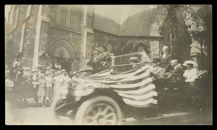 Henry Ford rode with President and Mrs. Woodrow Wilson during a visit to the Highland Park Plant. Wilson encouraged Henry to run for the United States Senate in 1918 (THF113675).