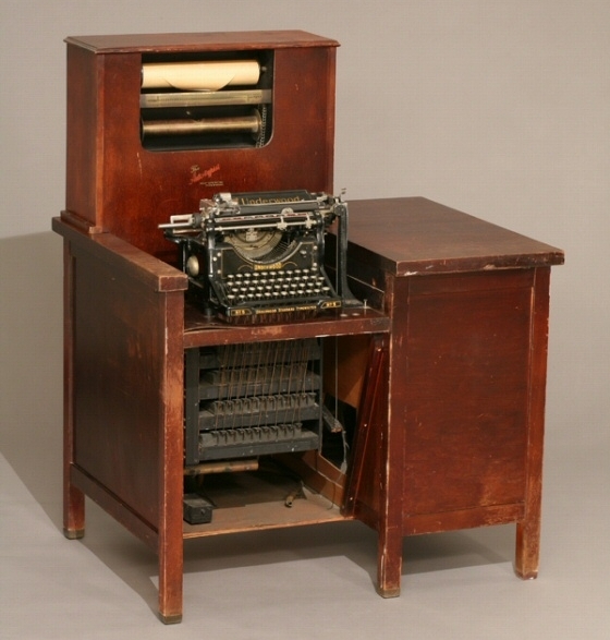 This Auto-Typist pneumatic automatic typewriter was manufactured by a Chicago player piano company in the1930s and used a player piano pneumatic mechanism to make offices more efficient.