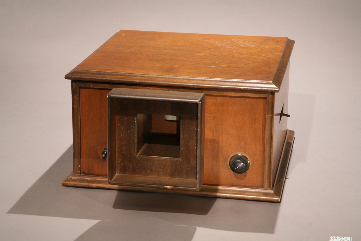 The television (39.554.1) is a Shortwave and Television Laboratory Model 26/36, sold as a kit or as a finished set. This was the viewer; it would have been connected to a radio receiver. That’s a 3” screen, for watching narrow-band television programming.