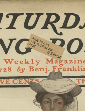 The Saturday Evening Post had widespread circulation; in fact, even Clara Ford had a subscription. Several of The Henry Ford’s issues from around 1903 bear an address label for Mrs. H. Ford at 332 Hendrie Ave., the address of the Fords’ residence in Detroit at the time. Henry Ford founded Ford Motor Company on June 16, 1903, just four days before The Call of the Wild was first published. When the final installment of The Call of the Wild was published a month later, Ford Motor Company had just sold their first car for $850, as recorded in their first checkbook. Coincidentally, the base price of the Model A car was $750, the same amount that Jack London received from The Saturday Evening Post for his story. (Ford Motor Company’s first customer paid an extra $100 for a tonneau, or backseat compartment, bringing the total for the car to $850.) I imagine that Henry Ford was quite busy building his fledgling company and didn’t have much time for leisure reading. However, it is interesting to think that he or his wife Clara might have read The Call of the Wild when it was first published, especially at a time when both Henry Ford and Jack London were on the verge of success that would lead them to become icons in American industrial and literary history, respectively.