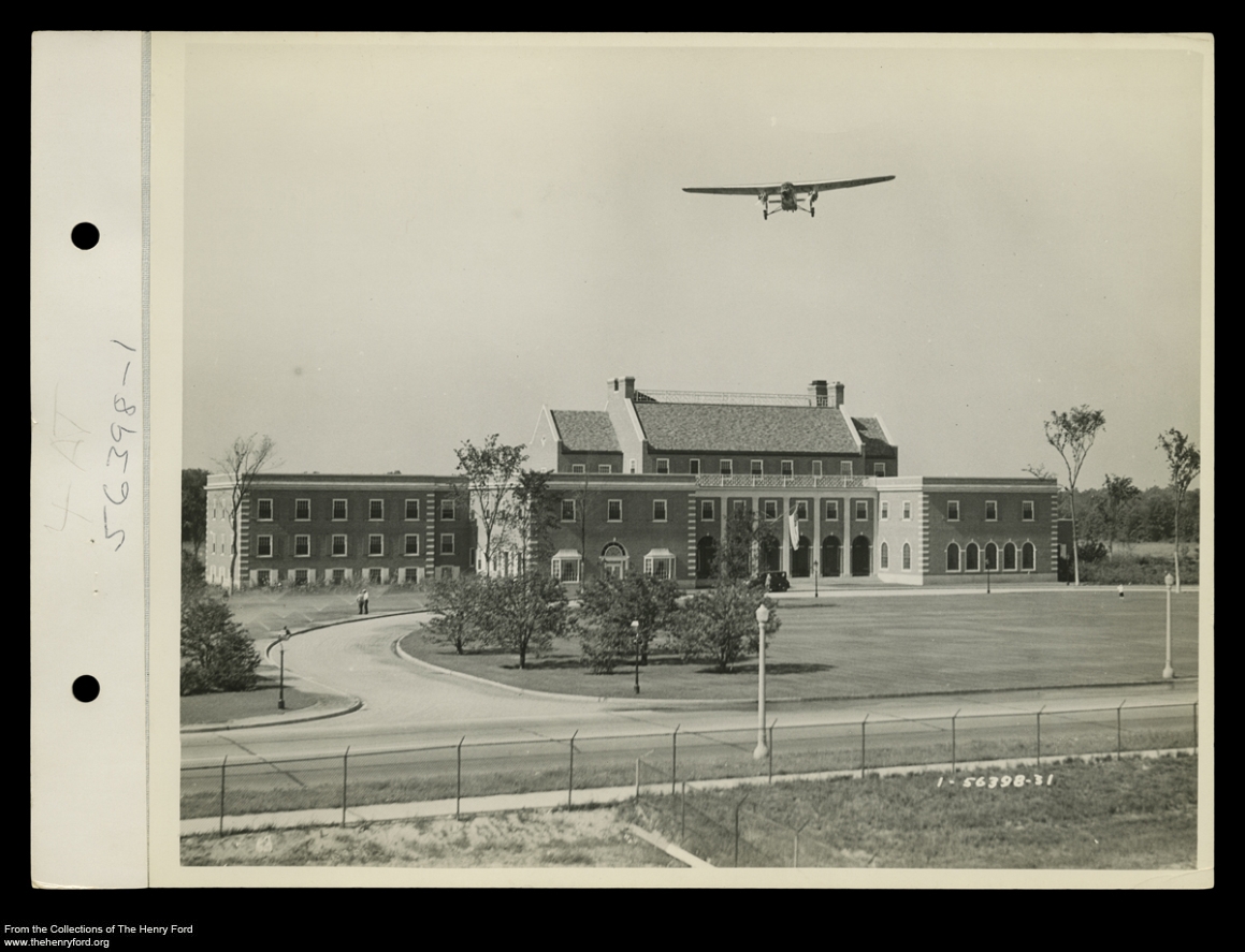 - Ford Tri-Motor Airplane in Flight over Dearborn Inn, Dearborn, Michigan, 1931