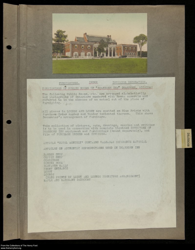 - Scrapbook Documenting the Furnishing of the Dearborn Inn, Michigan, 1936