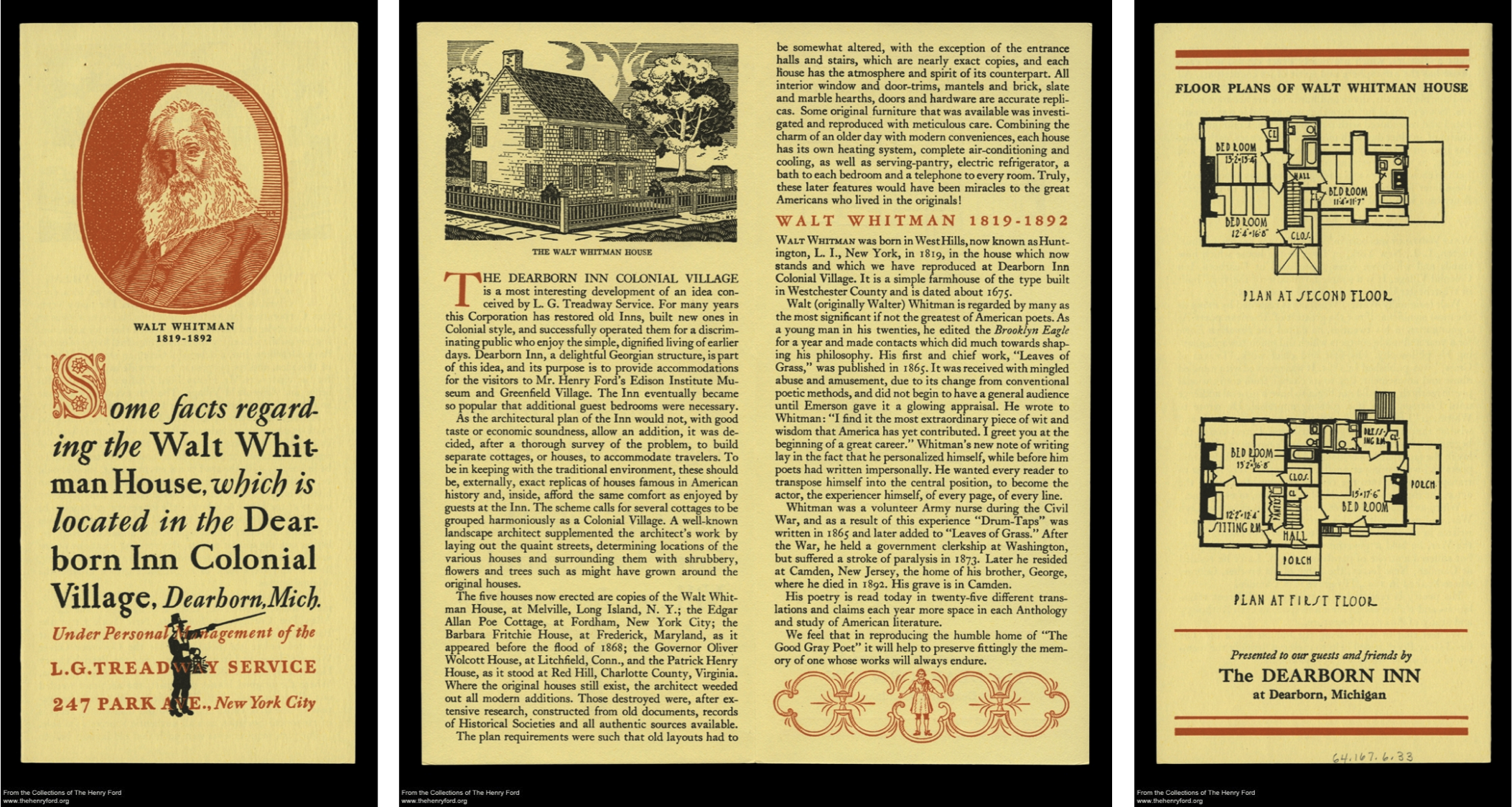 The Treadway Company managed the Inn and the “Colonial Village” for just three more years, until 1939, when their contract expired. The Inn and the reproduction homes have endured and prospered over the decades. Today, visitors to Dearborn may experience these houses in much the same manner as guests in the 1930s. Fortunately for us, the Marriott Corporation, who manages the Village and Inn, have maintained the high standards set in the 1930s.