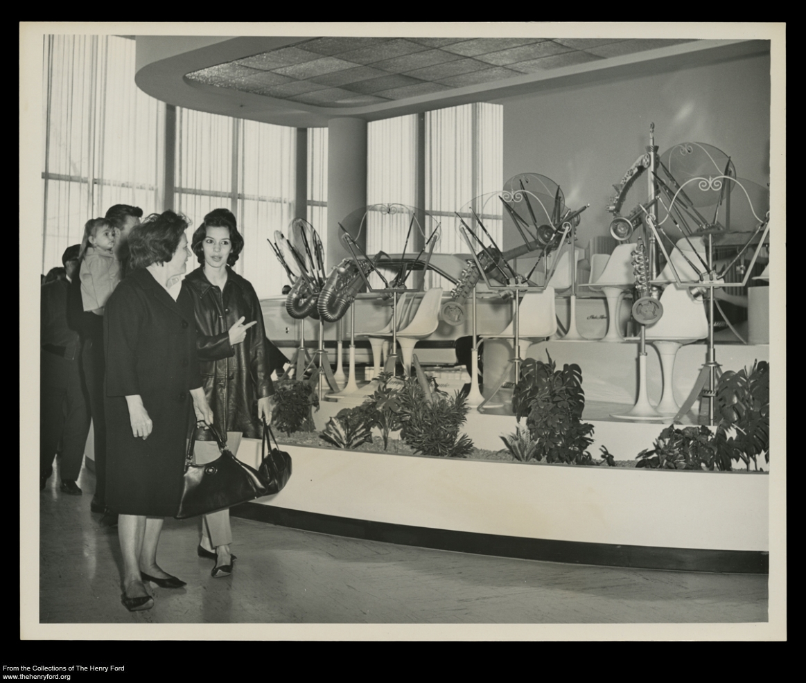 Returning to the real world of corporate exhibits, guests encountered five “Adventures in Science” displays, which highlighted Ford’s and Philco’s (a Ford subsidiary at the time) current research in the fields of space, electronics, power sources, fuel, and new materials.