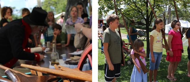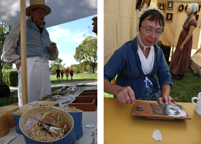 The Porches and Parlors district of the village was bustling with activity. The living quarters for the reenactors – aka tents – were set up on stretch of green between a few of the historic homes. Throughout the district, there were demonstrations and merchant tents that gave us a glimpse of life in the early 1800s.