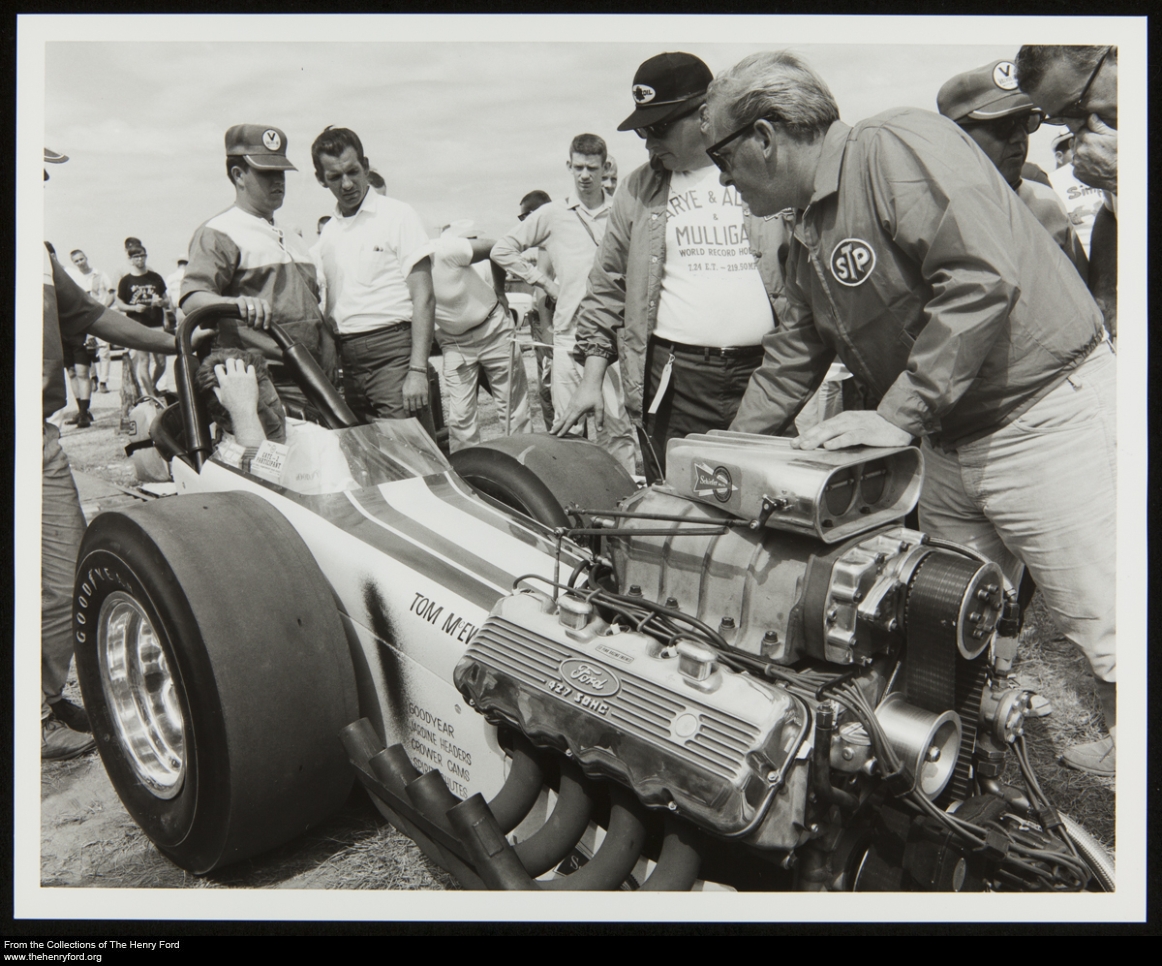 The Dave Friedman collection at The Henry Ford is a massive collection of automobile racing–related images. About 4,300 of these are now available on our digital collections website. The latest additions are photos documenting Ford drag racing in the early 60s, including this image from the 1966 NHRA (National Hot Rod Association) Nationals. Digital Processing Archivist and racing fan Brian Wilson notes that this particular image shows the “Brand Ford Special fielded by Lou Baney and driven by legendary Tom McEwen.” Visit our collection website to view more images from the 1966 NHRA Nationals, as well as images from the 1963 NHRA Winter Nationals, the 1965 Bristol Dragway, and the 1967 Riverside Drag Races. Or, browse through all of the Dave Friedman images in our online collections.