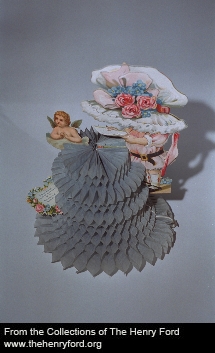 Take a look at this Cutout Valentine, "The Flags Spell 'Come Back to Me' Because I'm Lonely as You Can See," 1945. A mechanical card with two pieces hinged together so that the boat can rock from side to side. It was a gift to the museum from Mrs. Harvey Firestone, Jr. (Elizabeth Parke Firestone) and came in with the archival collection, Firestone Family Papers.