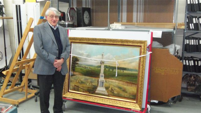 A few months ago, The Henry Ford’s staff came upon an intriguing object in our collection—a late 19th century painting of the Michigan Cavalry Brigade Monument in Gettysburg, Penn. In this painting, the figure of a soldier at the top of the monument gazes out over the field where this famed Civil War unit fought fiercely on July 3, 1863, helping to assure Union victory on the final day of the Battle of Gettysburg.