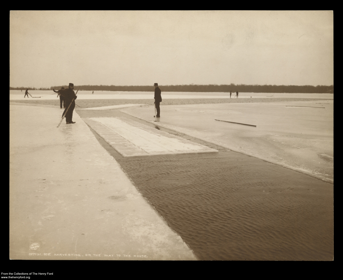 By 1830, foods that required refrigeration were staples of American diets. For decades, rural communities in colder regions of the country had harvested ice to keep certain foods from spoiling during the summer months. But as American cities swelled in the nineteenth century, so did the demand for fresh meat, dairy products, fruits and vegetables, and even beer. Before long, the local, small-scale ice harvest grew into a major industry. Wherever ice on a pond, canal, lake, or reservoir was thick enough, companies deployed teams of men, horses, and machines to harvest it for distribution across the United States.