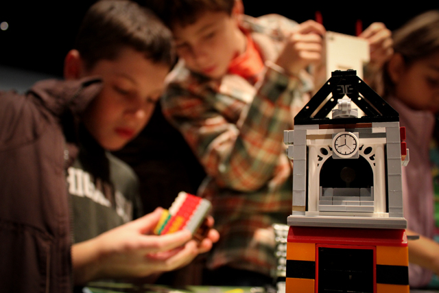 The exhibit includes a very large LEGO play area for visitors of all ages to put some of their newly found inspiration into practice. My son and his friend spent nearly two hours creating some architectural gems that they eagerly added to the growing LEGO city display table.