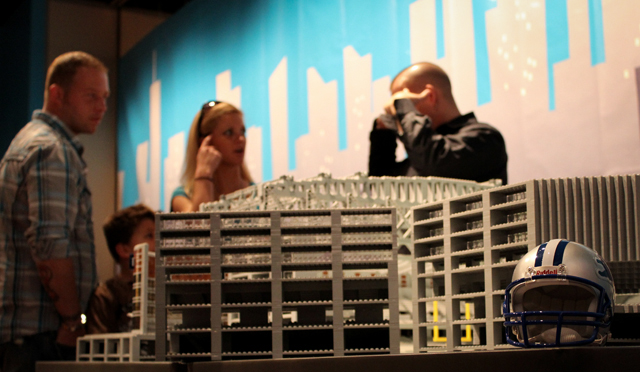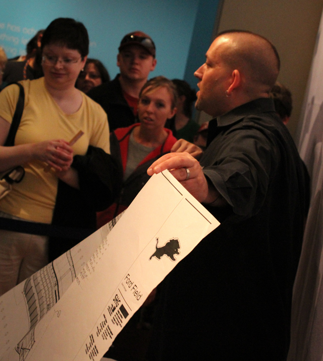 Tucker was on hand the opening weekend of the exhibit. He continued work on the Ford Field replica, took time to answer questions, sign autographs and even gave an impromptu tour.