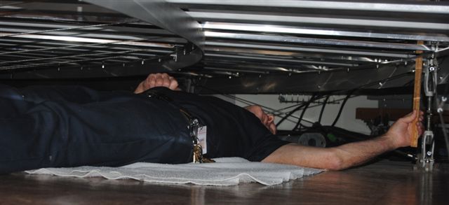 In addition, the flooring system (or deck) is made of hollow aluminum “beams,” with plywood attached with clip strips of bent aluminum. Right now we are determining the extent of wear on the deck after 10 years of relatively trouble-free service.