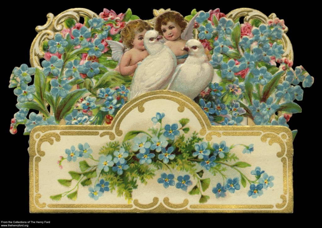 Valentine’s Day cards have long served this purpose. During the late 1800s, most of these cards were frilly, draped with images of cherubs, birds, and flower garlands, and dripping with sweet sentimental verses. Intended to be sent to family members or sweethearts, these fit the moral tone and maudlin sentimentality of the era.