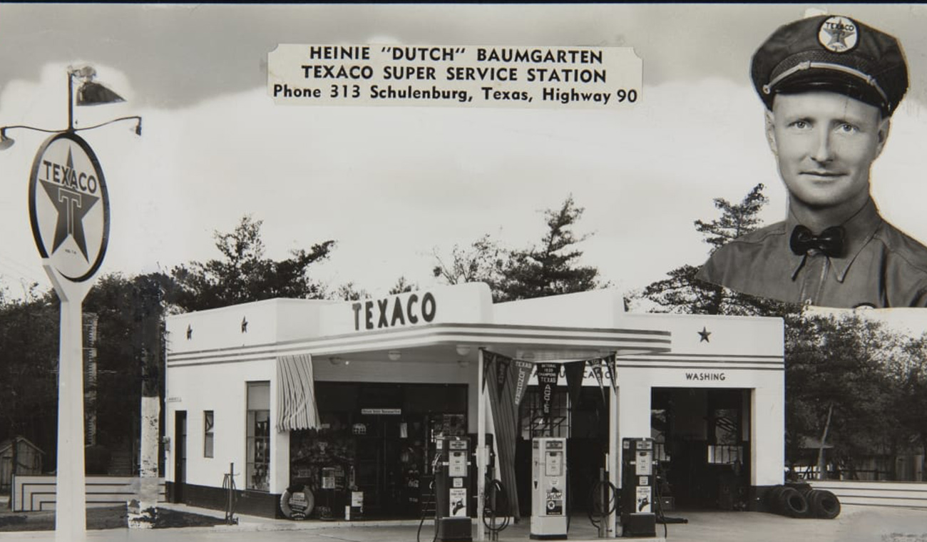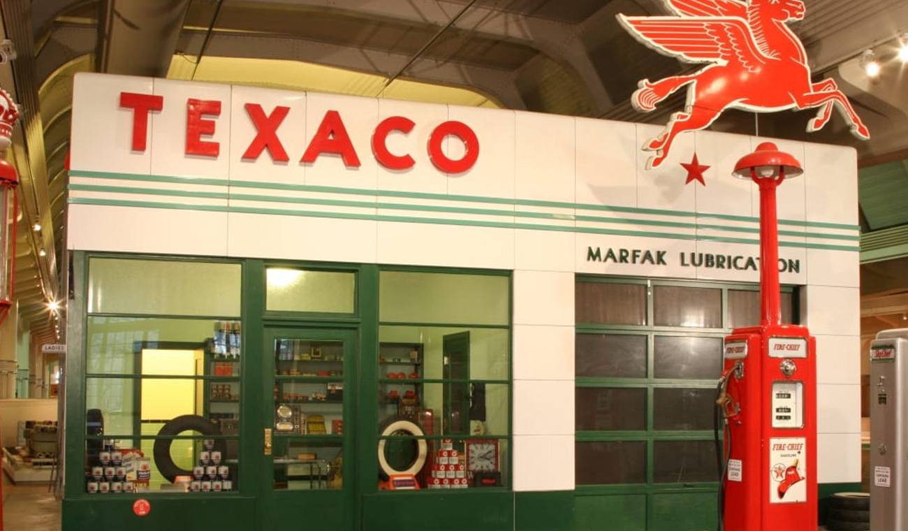 featuring gasoline pumps